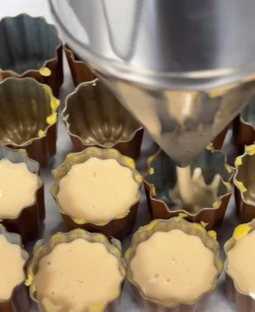 口に入れた瞬間に広がる、香り高いラム酒と贅沢に使用したバニラビーンズの芳醇な香り。外側は天然ミツロウでカリッと香ばしく焼き上げ、内側はまるでカスタードクリームのようなしっとりとした食感に仕上げました。