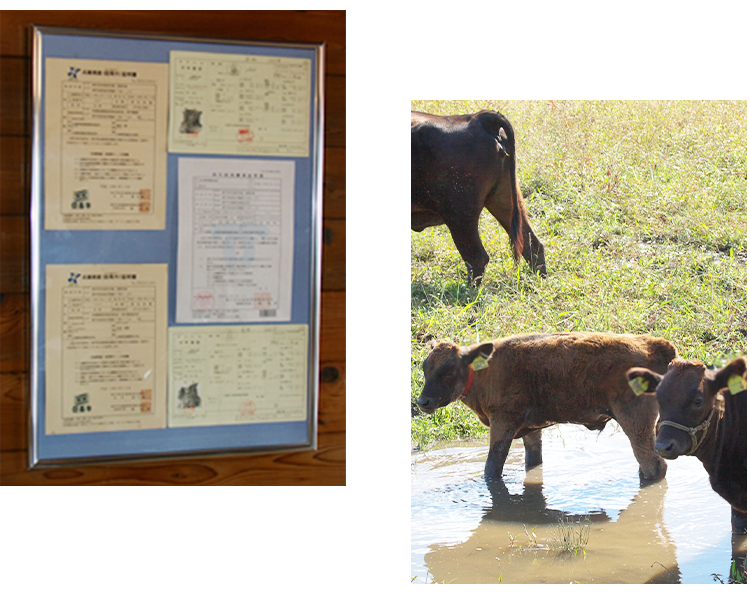 使用する精肉はすべて牛個体識別番号を店内に掲示。公的機関による「国産黒毛和牛証明書」「子牛登記書」「BSEクリーニング検査済証」等の各証明書が正真正銘の品質を保証します。